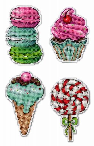 Тематика: магниты, вышивка магнита, пирожное, мороженное, десерт, сладости